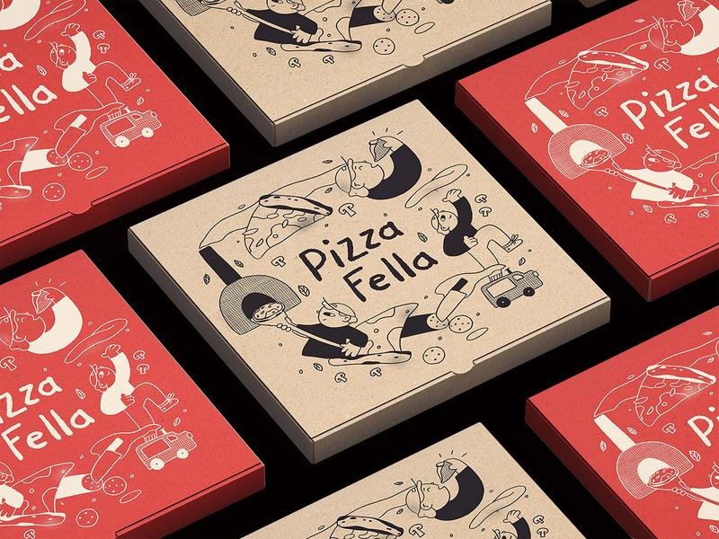This is uncommissioned, personal work. A set of illustration assets for a rebrand of a local pizzeria. The results include a logo, pizza box designs, a pattern for greaseproof paper, an illustrated menu and a set of illustrations to be used across social media and other pizza marketing!